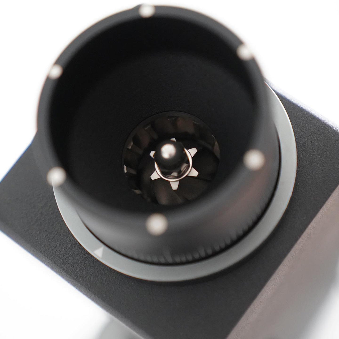 Varia VS3 (Varia 無段階 38mm) 電動グラインダーは、76.5° の鋭角の傾斜した形状を採用しています。 この形状を使用すると、理想的なゼロ滞留条件が実現するだけでなく、ホッパーへのコーヒーの追加、挽き調整、および計量カップへの 180 度のアクセスに関するワークフローが向上します。